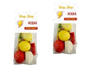 gepersonaliseerde zakjes met chips, snoep of een gezondere traktatie.