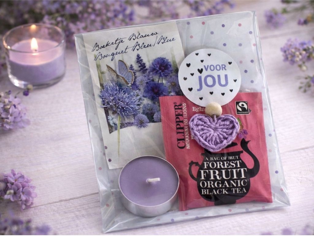 Door de combinatie van thee, bloemenzaad en een handgemaakt detail is dit cadeautje persoonlijk en warm.