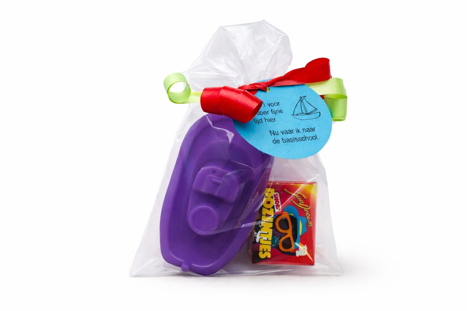 Maak het afscheid van de peuterzaal extra bijzonder met deze charmante afscheidstraktatie in de vorm van een schattig bootje. Met alle benodigde materialen, zoals het bootje zelf, een cellofaanzakje, lintjes en een dankkaartje, kun je heel eenvoudig deze traktatie zelf samenstellen. Het betreft een gezonde traktatie zonder snoepjes, maar je hebt de optie om snoepjes toe te voegen tegen een kleine meerprijs. Bovendien kun je de tekst op het kaartje aanpassen aan jouw wensen.