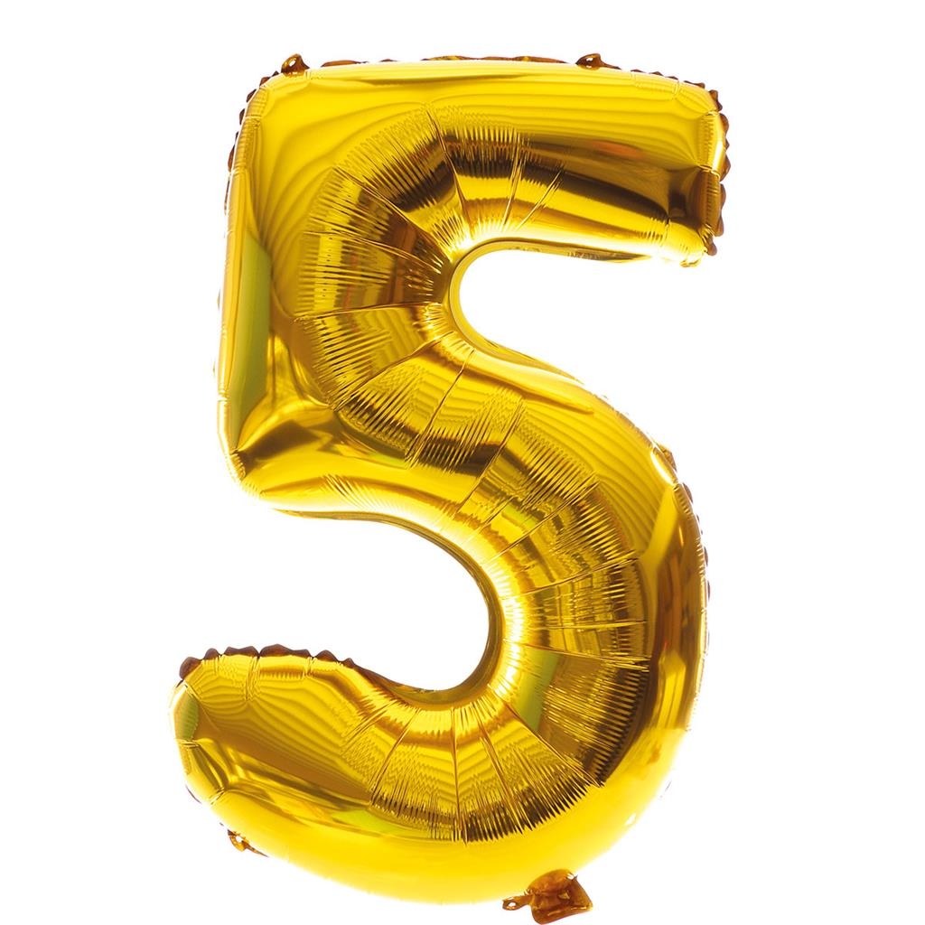 - Ballon cijfer 5, goudkleurig