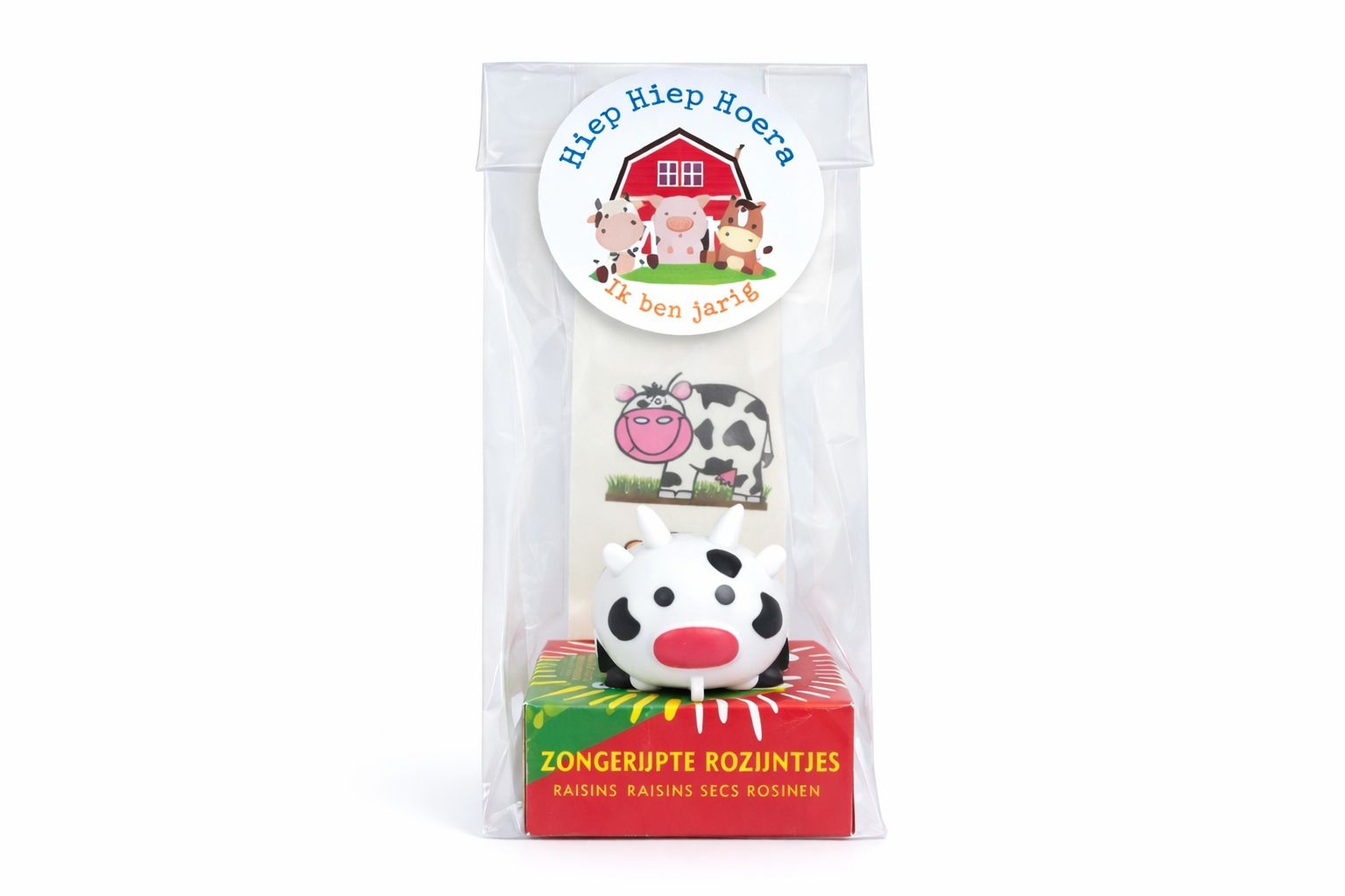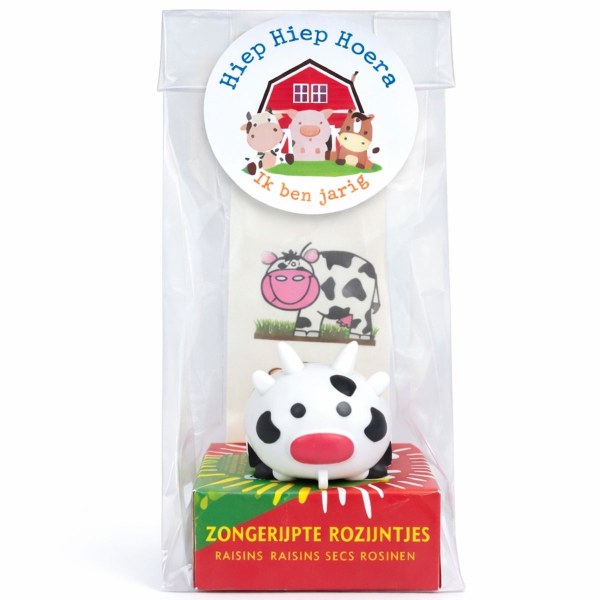 - blokbodemzak klein en een sticker met de tekst: hiep hiep hoera