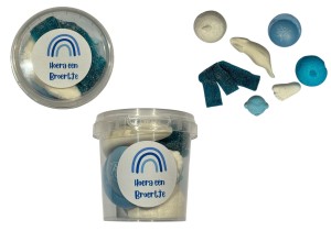 Je krijgt het volgende geleverd: 2 spekbollen, zure mat schuimmuis, zure ufo, 2 baby schuimpjes + verzegelbaar transparant bakje + deksel, 2 stickers