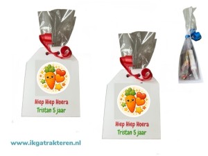 - Tip: bestel er lekkere snoepjes of leuke uitdeelcadeautjes bij, of maak er een gezonde traktatie van met fruit of een koekje.