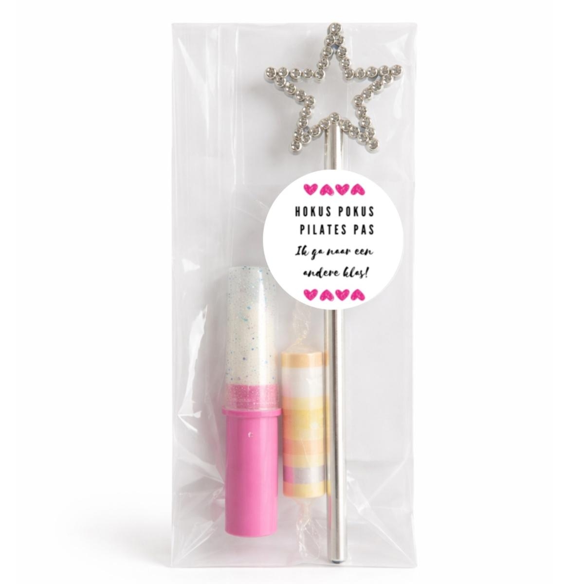 Leuke traktatie, waarbij u kunt kiezen om de traktatie zelf te maken of kant en klaar door ons geleverd te krijgen (meerprijs per traktatie) Als u kiest om de traktatie zelf te maken, worden de hieronder genoemde artikelen, zakjes en stickers los geleverd, zodat u deze traktatie zelf in elkaar kunt zetten