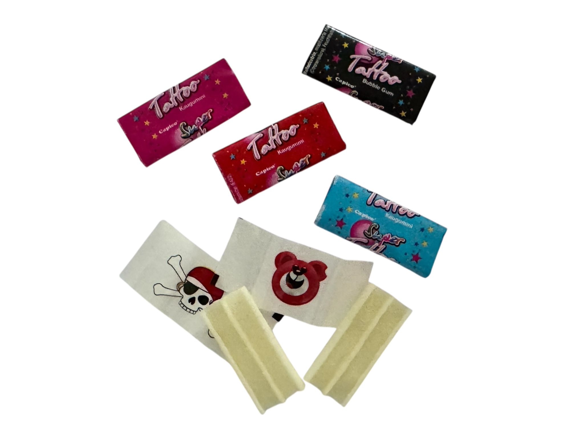 suiker, glucosesiroop, gombasis, zuurteregelaar: citroenzuur; emulgator: sojalecithine; bevochtigingsmiddel: glycerol; smaakstoffen, antioxidant (bht), kleurstof: karmijnzuur.
