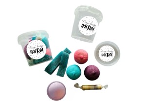 Kies je ervoor om de traktatie zelf in te pakken, dan leveren wij alle onderdelen los zodat je de inhoud eenvoudig zelf in het bakje kunt doen. Het bakje heeft een afmeting van Ø 69 mm x H 63 mm.