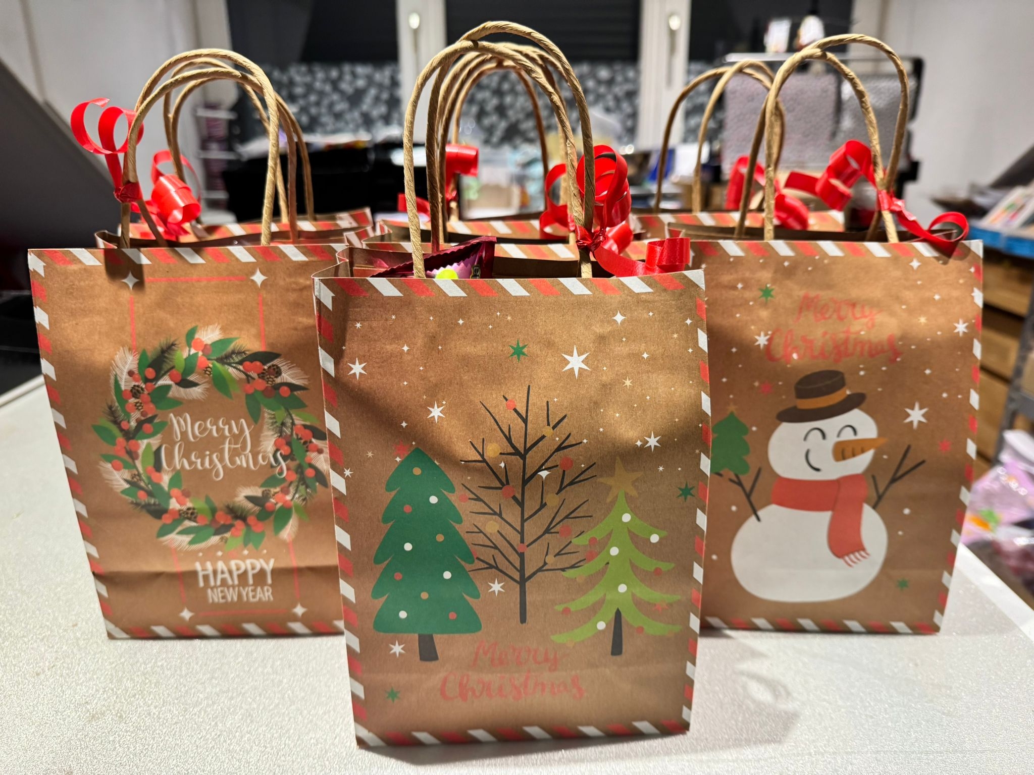 Een leuke tas gevuld met verschillende cadeautjes en snoepjes