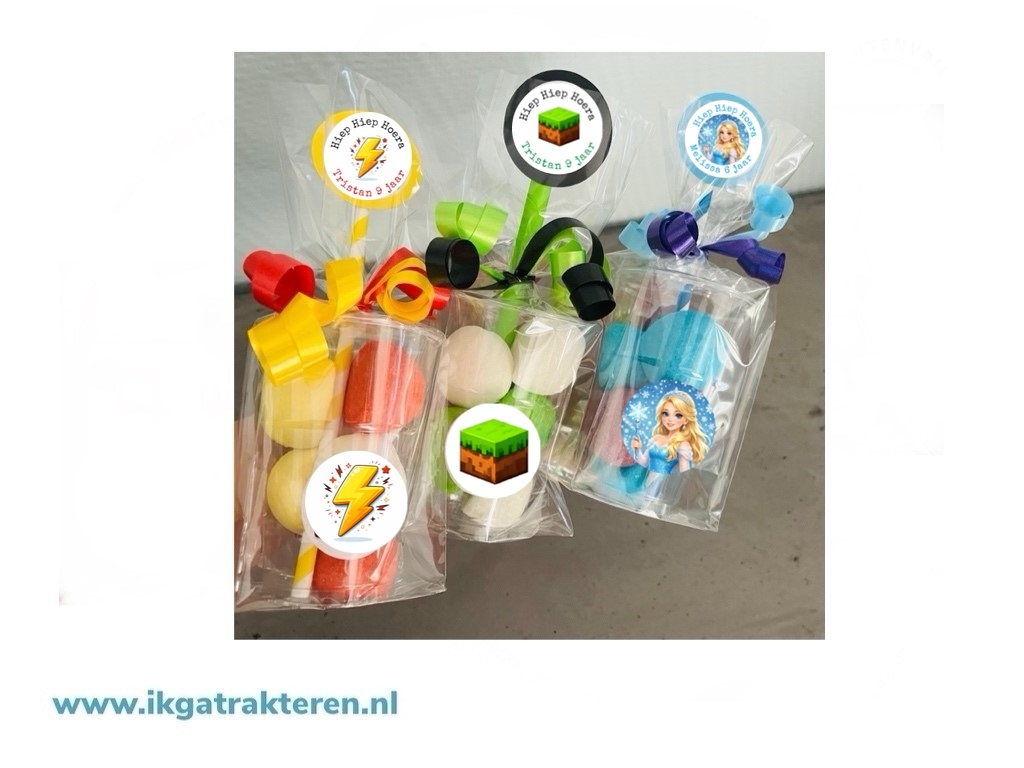 Wil je een eigen thema gebruiken? Dat kan. Stuur eenvoudig via WhatsApp de afbeelding door die je op de stickers en het kaartje wilt laten verwerken. Wij zorgen voor een mooie en verzorgde afwerking.