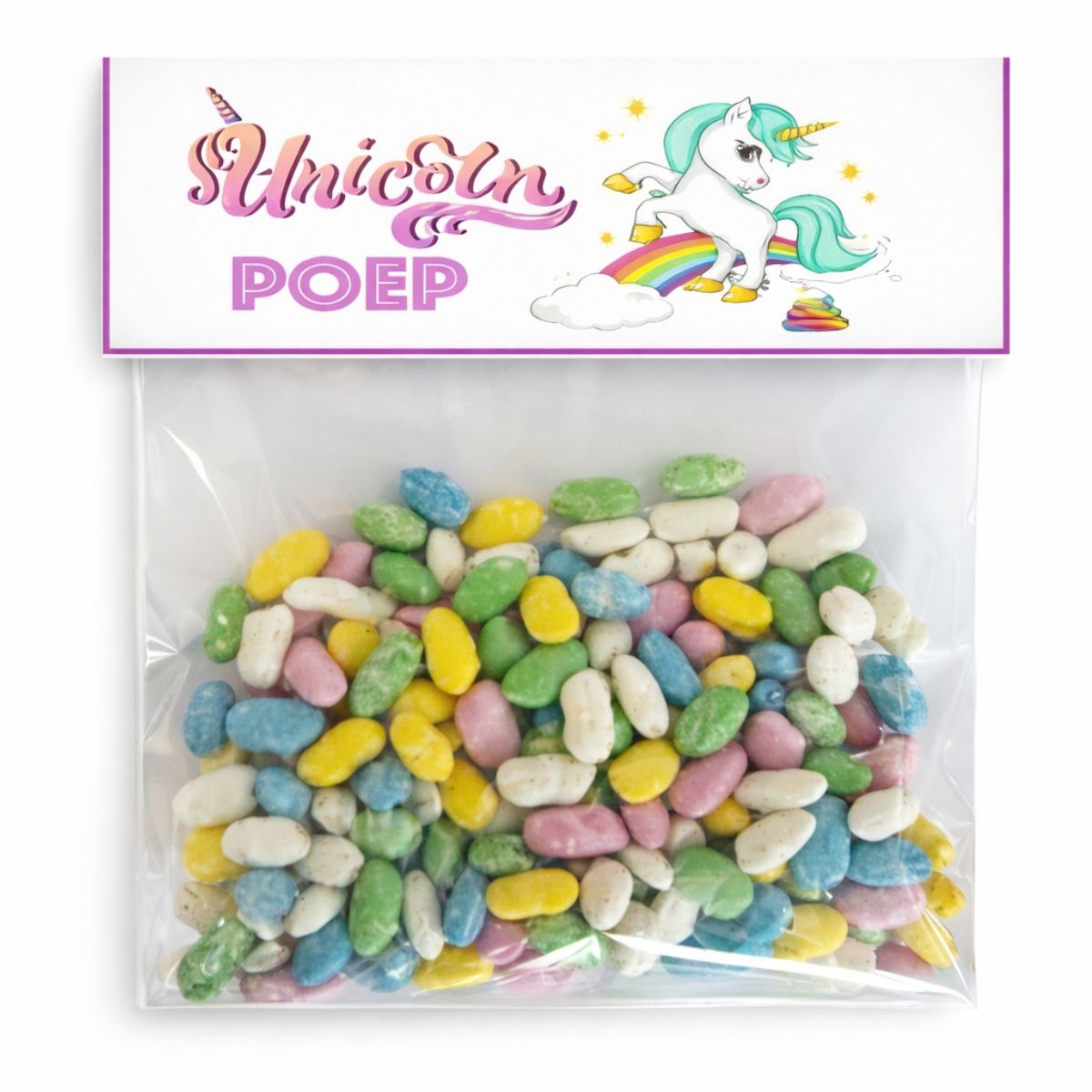 - Unicorn Poep Traktatie Zakje A6 met gepersonaliseerde label met tekst