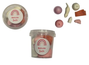 Als je ervoor kiest om de traktatie zelf in te pakken, dan krijg je alles los geleverd en moet je het zelf nog even in de bakjes doen.
