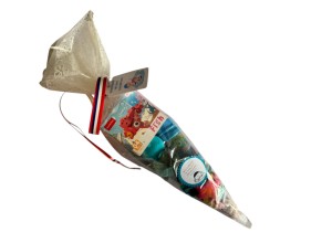 Mooi verpakt in een puntzak met rood wit lint, kaartje en Sticker gefeliciteerd met jouw zwemdiploma (zie foto 2 voor de details)