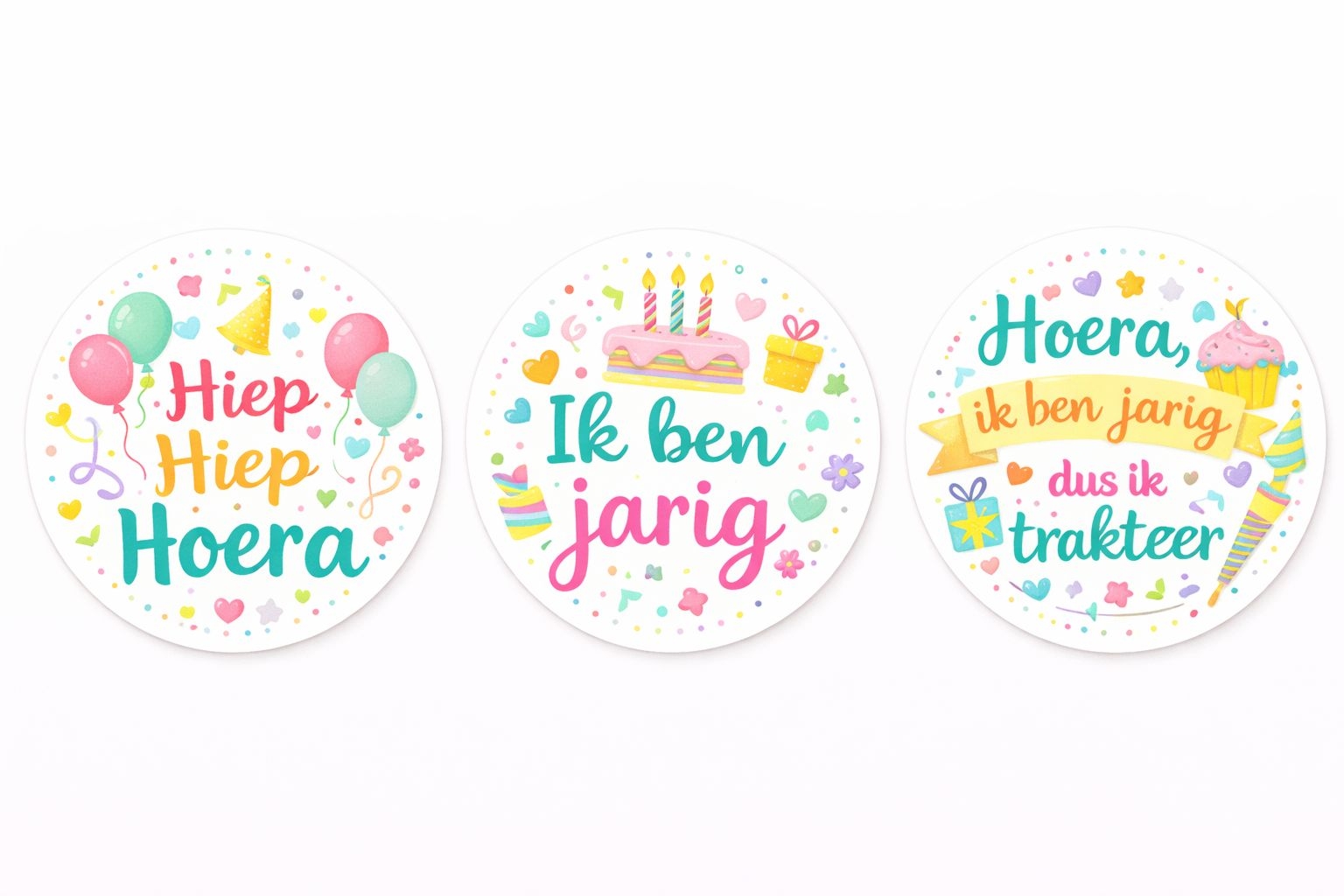 Ook mogelijk met een neutrale sticker zoals “Hiep hiep hoera”