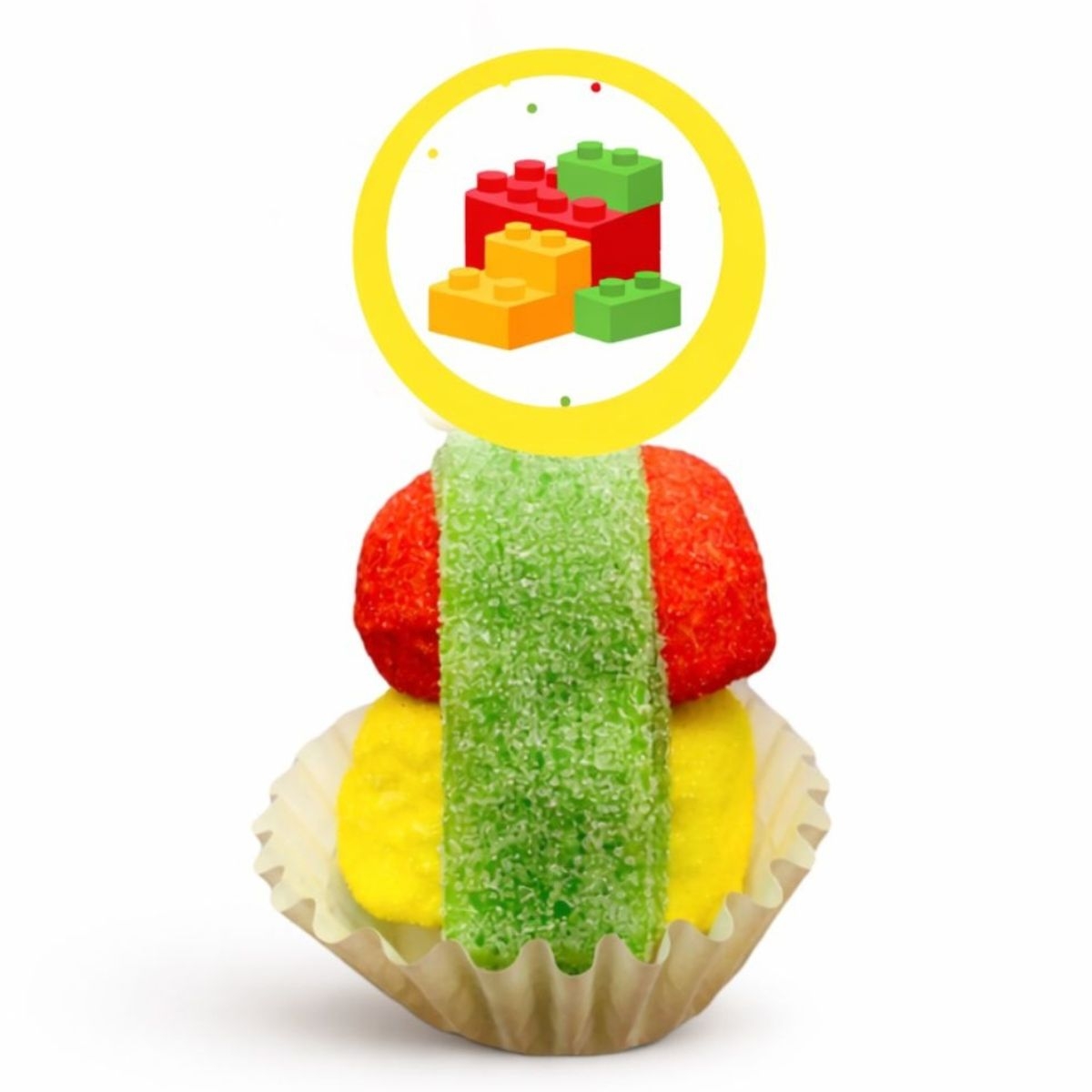 Lego Ninjago traktatie zelf maken? Maak je eigen snoeptaart Lego Ninjago. Je krijgt het volgende geleverd: - Spekbol geel - Spekbol rood - zure mat appel of appelveter - prikker Lego Ninjago (Zelf sticker op het kaartje plakken en het kaartje aan het stokje bevestigen) - cupcakevormpje wit (optioneel) - Cellofaanzakje (optioneel tegen meerprijs, ze blijven dan beter vers) - Krullint Geel en Rood (voor 1 taartje) om het zakje mee dicht te maken (optioneel tegen meerprijs) Wil je een snoeptaart Lego Ninjago maken ?