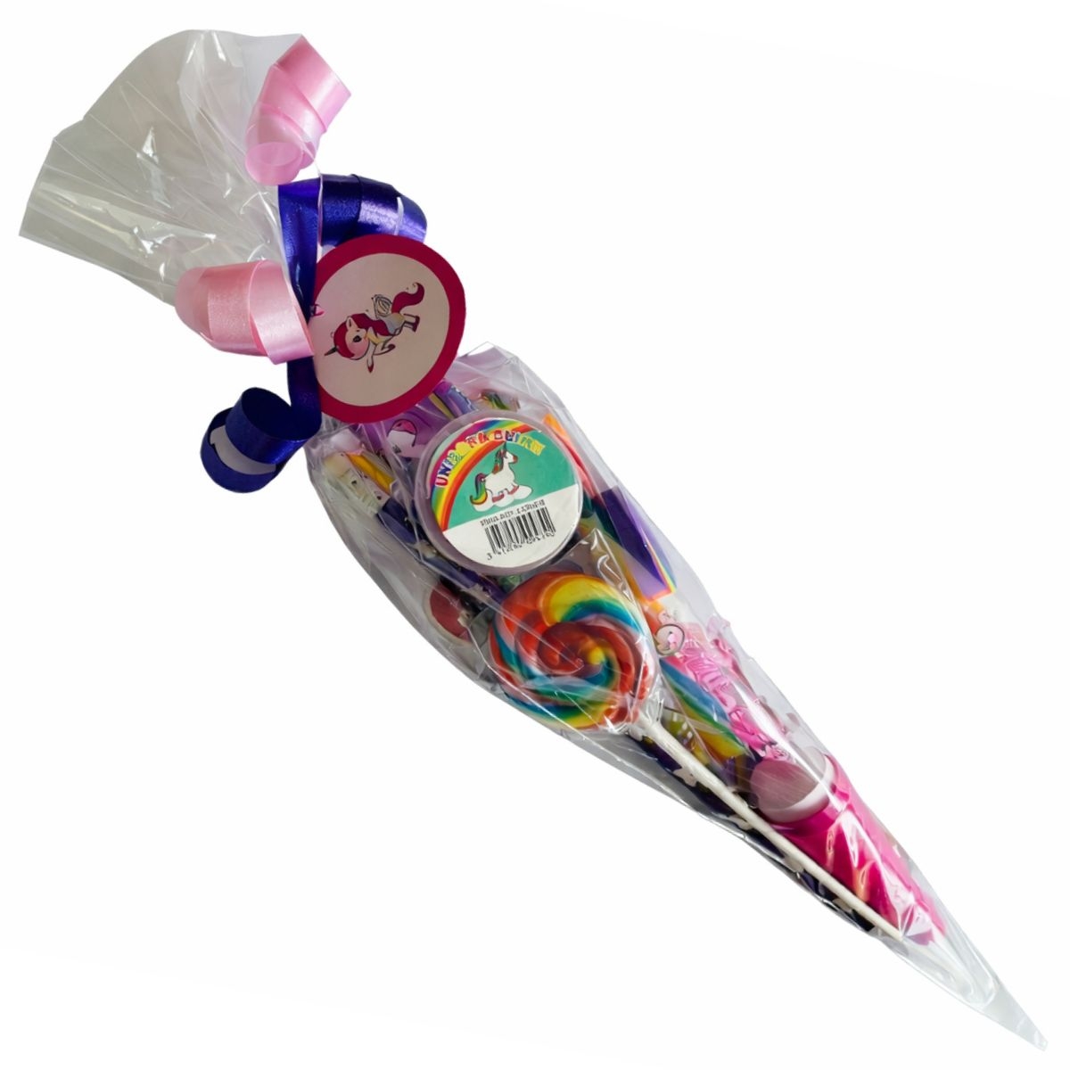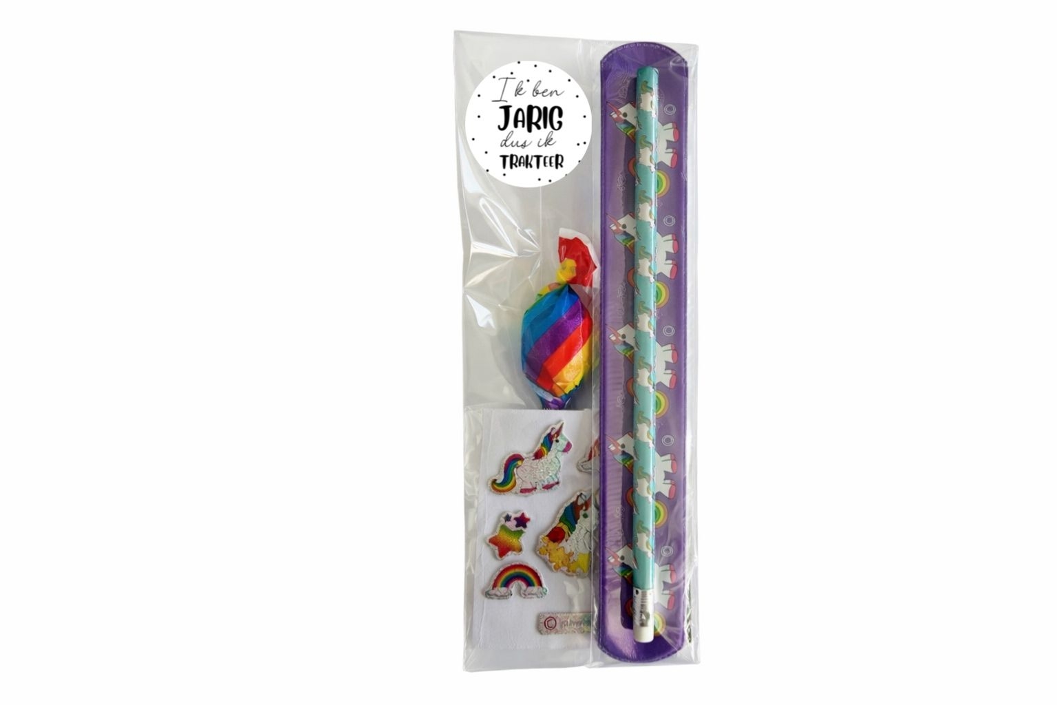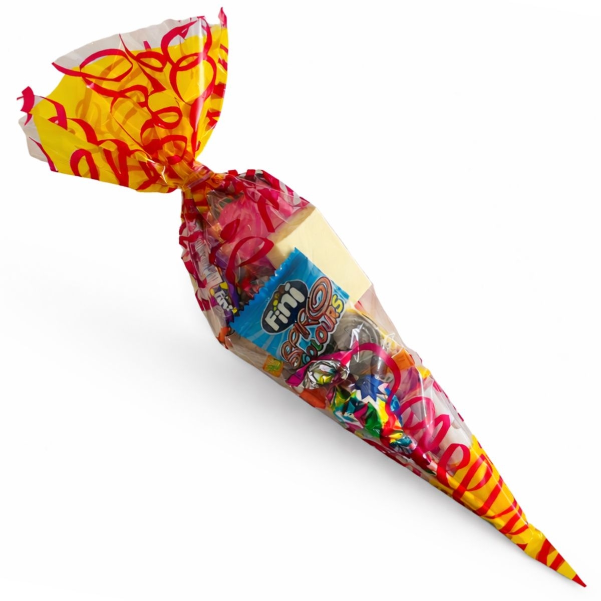 Altijd leuk om weg te geven op een kinderfeestje of zomaar. Een puntzak gevuld met het volgende snoep: Kauwstaaf Superfluit Ambachtelijke knots (lolly) Kauwgum Tattoo Rolletje snip it Zakje Goudbeertjes Hamburger Kabelspekje Let op: indien er een snoepje uit deze zak niet voorradig is leveren wij een gelijkwaardig snoepje, ook de kleur van de puntzak kan wijzigen!