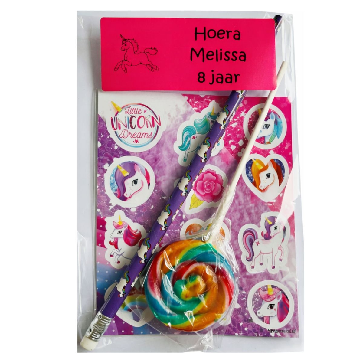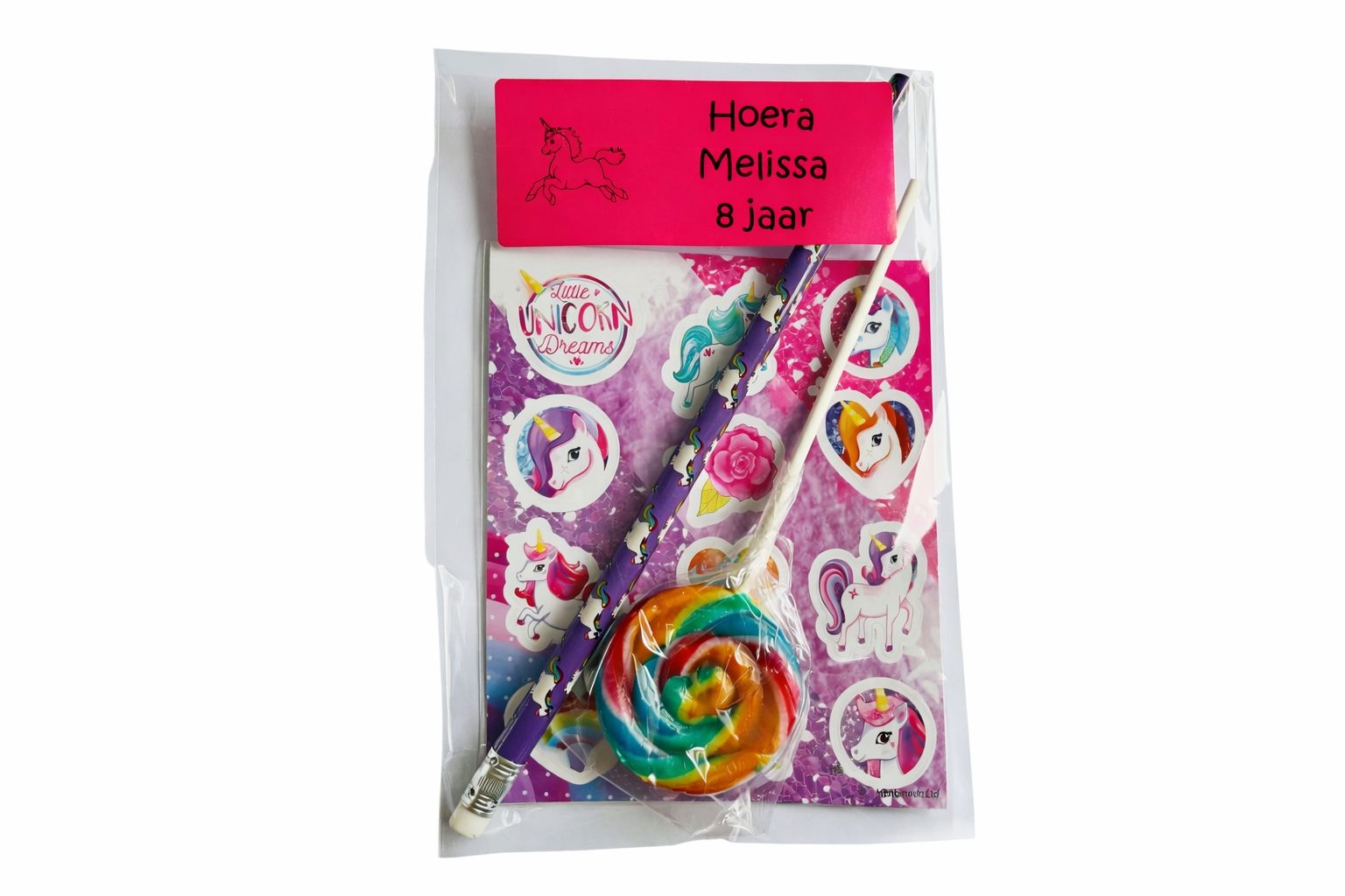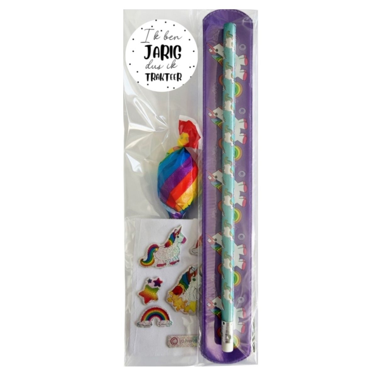 Altijd leuk om weg te geven op een kinderfeestje of zomaar. Een puntzak gevuld met het volgende snoep: Kauwstaaf Superfluit Ambachtelijke knots (lolly) Kauwgum Tattoo Rolletje snip it Zakje Goudbeertjes Hamburger Kabelspekje Let op: indien er een snoepje uit deze zak niet voorradig is leveren wij een gelijkwaardig snoepje, ook de kleur van de puntzak kan wijzigen!